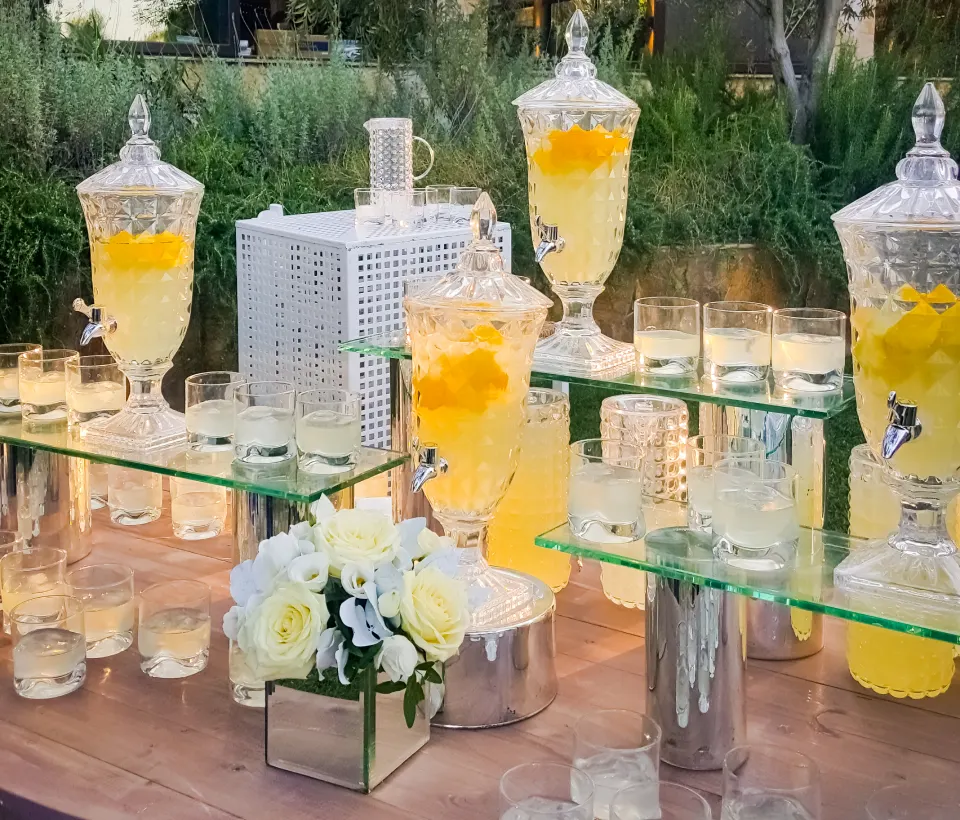 Η εμπειρία ολοκληρώνεται με ένα επιμελημένο bar setup, με δροσιστικά ροφήματα για τα παιδιά, signature cocktails και mocktails για τους ενήλικες και θεματικά ποτά που ταιριάζουν στο ύφος της εκδήλωσης.